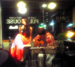 先週の金曜。前回の日記にも残したように、ギターの岡本博文さんとボーカルの溝口恵美子さんの四日市 FULL HOUSEでのライブリハの時からお二人の凄いものを感じ、ドキドキワクワクの私4曲一緒にできると準備していたけど、急遽Bossaの名曲と溝口さん作詞作曲(これが良い曲なんです)の2曲を増やすことになり、ドキドキワクワク感がUPUPオープニングアクトは、岡本さんと私たちTempo Felizより私とWoodyさんでTrio岡本さん繋がりで、去年・一昨年の赤木りえさんとのライブもご来店の耳が肥えたお客さんの多い中での演奏去年りえさんとご一緒させてもらった時は大御所を前にガッチガチで我はどこへやら…になった私でしたが、今回は不思議と緊張しなかったんです。落ち着いて楽しむことが出来ました(岡本さんも「この前とは人が違うみたいやで、今日は水を得た蛙(笑)のよう」と言ってました)そしてその後、主役の溝口恵美子さん登場独特の世界観に惚れました観客を引き付ける力、とっても勉強になりました圧倒的な歌唱力、とにかく凄かったですこの画像は、ライブに来ていたお客様のブログから頂戴しました 心から楽しむ・聴き入るってこういうことなんだ…と改めて痛感。最後2曲は再び私たちも入れてもらって、盛り上がりましたこの画像も、ライブに来ていたお客様のブログから頂戴しました 本当に心から楽しく、この場にいることのできる幸せを感じましたライブ終了後もお二人と私たちTempo Felizの私とWoodyさん、そしてFULL HOUSEのマスターと奥さまで、午前様までお話してましたそこで学ぶことも多く時間を忘れて話し続け、すばらしい時間でした。気分良く帰宅し、心地よくお風呂に入り、お布団は入ったらあっという間に夢の中翌日も気分よかったので、ナント人生で一番大きなお買い物をしましたこの話はまた追々(笑)