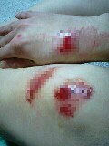擦りむいた手の甲からは血が止まらず、膝も擦りむき、ズボンも破れ…