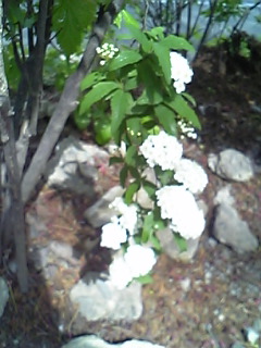 ユキヤナギと思いきやコデマリが咲いていました。今日は朝お天気がいいけれど湿った風が吹いています~~。