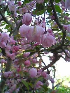 そろそろソメイヨシノは終わりでしょうか。。。八重桜の桃色の花が咲いていました。