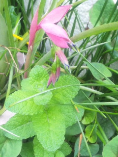 少しだけ、蕾が膨らんできました。この苞の中に花が入っています。アスパラガス、収穫3本目です。名前不明の草花。今日は少しは鮮明に撮れたかな。オダマキ。先日のより、少し色が紫が強い。八重矢車。なかなか咲きそうにない。ナスタチウムの本葉が出ました。チェリーセージの花が咲きました。気づかないうちに、アイリスも咲いていました。