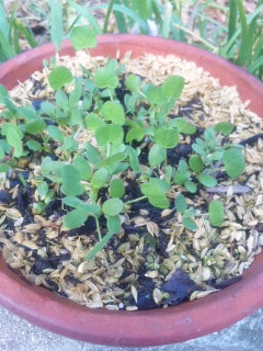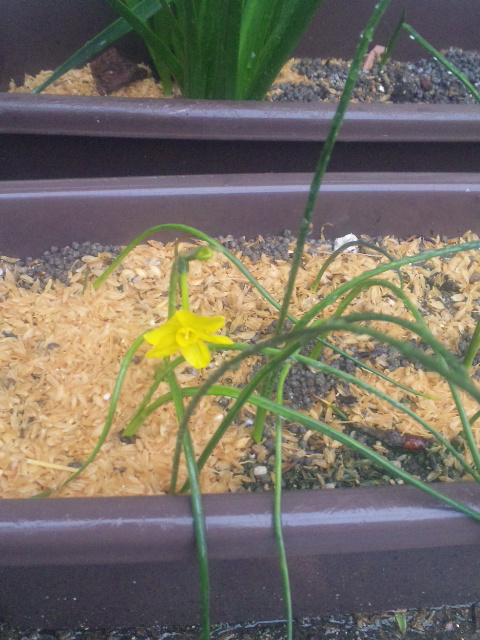百円均一で買って来たデイジーの双葉が出ました。シャスターデイジーも。。。八重矢車も蕾が膨らんできました。名前が不明。オーニソガラムみたいな花のようです。白のフリージアが咲きました。
