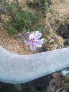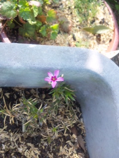昨日でしたか、蕾だったシバザクラの花が咲きました。絞りの入ったシバザクラです。明日はピンクが咲きそうです。