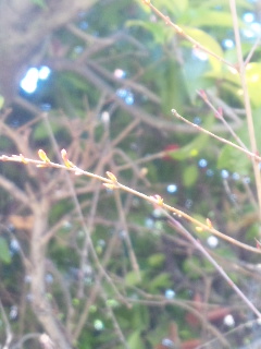 気温も上がり、太陽が姿を現すと元気になりますね。モンシロチョウが羽を乾かしていました。ストロベリーキャンドルの本葉が出ました。シバザクラの蕾が膨らんできました。我が家のサツキに初蕾!ご近所のフリージア。花は赤系のようです。