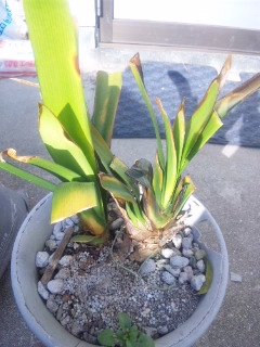今日は予報どおりの雨。早朝は、まだ曇りでしたがだんだん本降りになってきました。昨日、見越してパンパンになっていた君子蘭の株分けをする。今の時点で蕾が出る気配がなく葉も枯れかけていたので実行に踏み切りました。株分け前。鉢もわれかけている。とても、鉢から株が取り出せそうになかったのでプラの鉢は割って取り出したところ。根がぎっしりでした。どの根も太くて、死んだ根はなく、きれいに分けられました。赤玉土1:腐葉土4を混ぜて新しい鉢に。。。でも、少し鉢が小さかった。来年は、大きい鉢にしたほうがいいかもしれないな。