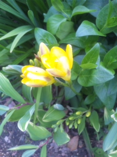 昨日の雨も上がり少しムシムシした不快な気温です。今日は22℃近くまで上がったらしい。黄色のフリージアが咲きました。ステラは赤紫でした。咲いてみないと分からないものですね。オーニソガラム風な花。去年は咲いた覚えがない。ナルコユリの花がぶら下がっています。チェリーセージもいつの間にか伸びて蕾がついています。ナスタチウムの双葉。