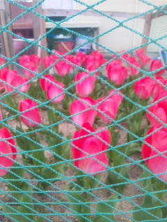 仕事からの帰り。。。ご近所のお庭に可愛いチューリップの花園が。きれいです。