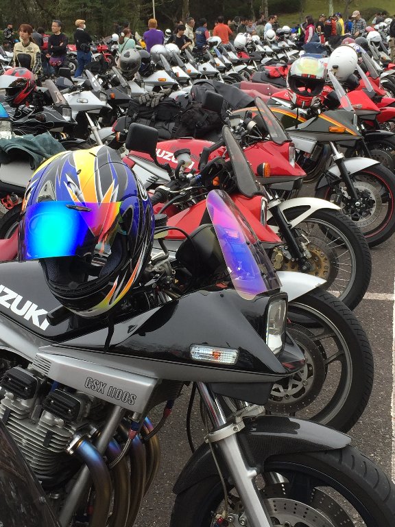 行ってきましたぁ~竜王カタナミーティングカタナがウジャウジャ(笑)変態カタナもウジャウジャ(笑)(失礼)日本中の650Gが集まってんじゃないのかな~このミーティングは良いよね遠方の仲間に会えたり、新しい仲間に会えたりでね。今回もスポークカタナの紳士Mさんに会えたり、タヌキさんにロッパさん、カモちゃんやコガさに会えたよ。平均年齢が高くなるカタナ乗り(笑)乗っていたらみんなに会える。やっぱ、カタナは良いな