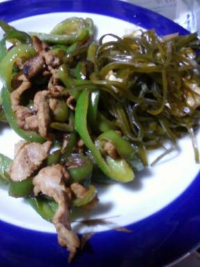 煮物、酢の物、サラダに‥お母さんが買ってきたどうしろと‥沖縄料理のクーブイリチにしてみた麺みたいに長いアゲと少しの豚肉に山菜水煮を入れて炒めた、それに青じそニンニク醤油を入れたらスパイシーで美味しい♪ピーマン炒め菊芋とベーコン、オニオンスープ →血糖値にいいらしいサラダ