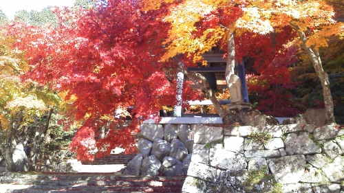すいません、横向きになって見にくいと思いますが。日曜日は晴れていて絶好の紅葉日和でした。たくさんの観光客が銀杏や紅葉を見ていました。写真を撮る人のほうが多かったかな。お寺と紅葉っていいコントラストかも。。