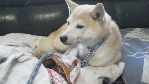 何かぼんやり考えている様子のマック。最近、少し元気が無いような。そんなときは寄り添うのが一番。誰かにかまってほしいらしい。人間も孤独には勝てません。犬も一緒。まだ後1枚マックの画像があるのでまたアップする。