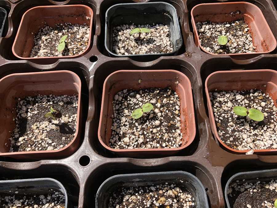 タキイネットさんで買ったひまわりの種と百日草の種が発芽しました。