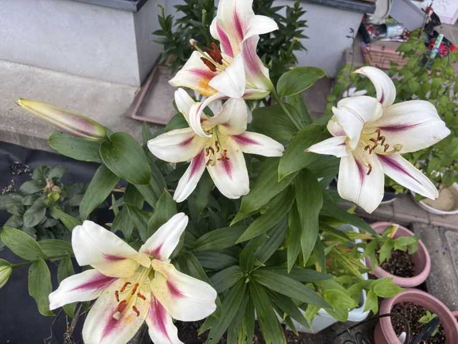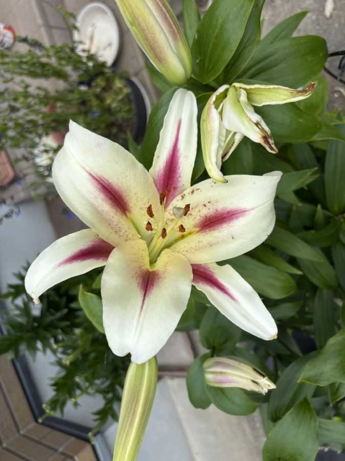 ​​​ついにOTハイブリッドの咲く順番になりました。しかし残念なことにテッポウユリが咲くくらいの時期から梅雨になってしまうのですよね。蕾の時点で軒下などに置ければよいのだけれど・・・。
