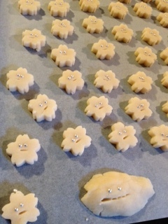 長女マッキーが作った顔クッキー。桜の型で抜いたから、桜ちゃん? チョコ味は、まっくろくろすけと言っていました。義母が送ってくれた不知火というポンカンでケーキも。まっくろくろすけにピンクの頬紅をつけて、りんごのほっぺちゃんになりました。桜ちゃんにもピンクのほっぺ。抹茶味もあります。彼氏のイベントへの差し入れと、 今夜私の実家に泊まりに行くので、 マッキーは祖父母やそばに住む叔母家族にもあげるそう。 P.S.みんな美味しいと喜んでました。
