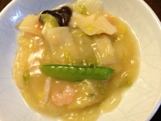 夕食は、中華丼。春巻。昨夜の残り物の烏賊と野菜の煮物。ほうれん草・もやしなどのビビンバ。豆腐とワカメのスープ。昨日の味噌汁をリメイク。