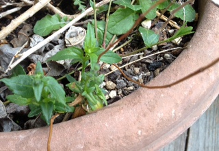 ネメシアがこぼれ種で出てきてます。菫。ニーレンベルギア・オーガスタ(ブルーリング)。枯れたかと思ったら、芽が出てきた!山芍薬。おととし買って、まだ咲いてないのですが、3年目にしてようやく花芽?が出てきました!!手前の菫は咲いてます。鷺苔。野草ですが、可愛いのでプランターに移植しました。でも、売ってもいるんですね。菫。千鳥草の花芽。野草。なずな?菫。