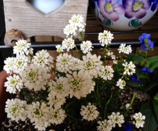 スィートアリッサム。また咲いてきました。クリスマスローズ・糸ピコティアネモネ咲。種が出来てます・・・プルモナリア・ブルーエンサイン。ビオラ。左から八重チューリップ、中国青花シャガ、ビオラ。ヒヤシンス。早咲久留米つつじ・レジナ。なでしこ。右に鳥のドームのピックを挿してます。宿根プリムラ・ダブルプリムローズ・ミスサイゴン。イングリッシュプリムラ・トートイズシェル。