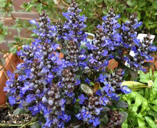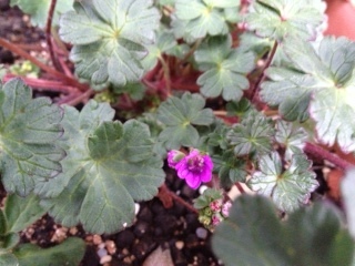 アジュガ・チョコレートチップ。フウロ草(ゲラニウム)・ビルウォーム。花弁が落ちかけてます・・・芝桜・オーキントンブルー。