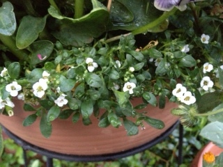 菫。アジュガ・チョコレートチップ。スィートアリッサム。つる日日草。芝桜・オーキントンブルー。ムスカリ。