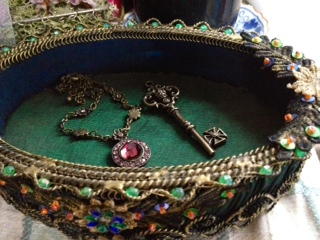 また、100円ショップSeriaで買った雑貨です。 100円ショップでも結構可愛い小物を売ってますよね。特にSeriaは。長女に言わせると、次はキャンドゥー、最後がダイソーだそう・・・先日リサイクルショップで買ったアンティーク風の小物入れに雰囲気の合ったペンダントと100円の鍵を入れました。宝箱のイメージ?エッフェル塔のクリップと置物。ミルク缶。絵葉書を立てるアンティーク風イーゼル。木製写真立て両面タイプ。木製イーゼルも。憧れの額縁風プランターに作り直したいなあ・・・エッフェル塔を、薔薇のリースを入れたガラスとアイアンの器の両側に並べました。でも、左のクリップは「真珠の耳飾りの少女」の栞を挟みました。