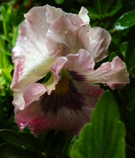 ムスカリ。ヒマラヤ雪ノ下の葉の下から出てきてます。ヒマラヤ雪ノ下。つる日日草。ビオラ。パンジー。紫に白の覆輪。パンジー。ビオラ。ストック。パンジー。フリル咲パンジー。