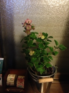 うちの花です。長女マッキーが、勤務先のカフェであった結婚式の飾りの花をもらってきました。鉢花にして、お客様やスタッフに配ってくれたそうです。チャイニーズハット。以前うちにもありましたが、枯れてしまいました・・・真ん中の花芯が紫で広がります。義母が庭に生えていたススキを切ってきてくれました。お月見の時に欲しかったけど、まだ穂が出てなかったそう。ストレプトカーパス。3輪目が咲きました。右上の方です。裏側なので色が薄いから、わかりにくいかも。2輪はまだ咲き続けてますね。