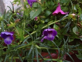 またまた、うちの花。 匂いばんまつり。アイビーゼラニウム・べビーシュガー。オレガノ・ケントビューティ。ブルーサルビア。ペチュニア・ブルーバニラ。八重から一重になってきてしまった・・・メドーセージ。ポーチュラカ。ペチュニア・ほお紅。やまほろし・パープルの蕾。