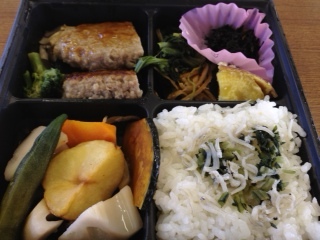 今日は、入間おやこ劇場の例会企画会議と例会部があったので、仕事を休んで参加しました。まだ有休残ってるしね・・・今年は、入院するので総会の例会選びに出席できないと思うと、例会企画会議で例会の候補を選ぶのもテンションが上がらない・・・でも、西グループ合同例会選びは10月5日だから、参加できますね。ネイチャーコンサートがあるけど、時間はかぶらなさそう。 今日の午後は例会部なので、コンビニでお弁当を買ってきましたが、野菜がたっぷり入った和風ハンバーグ弁当にしてみました。例会部でも最後のご奉公?と思って、会報シェイクの原稿を一部作成しました。退院しても、しばらくリハビリでパソコンもできるかどうか不安・・・ 仕事が早いと言われると、ついその気になって?今日中に仕上げなくちゃと頑張ってしまう・・・ついでに入間おやこ劇場のHPも更新していたから、自分のブログは二の次です。やっと今頃アップしました。昨日は、夕食の写真を撮り忘れてしまったけど、今日はしっかり撮りましたね。鮭の塩焼き。ミートボール。今日は中秋の名月だけど、月見団子を買わなかった。下の写真は、長女マッキーが帰りがけに撮った写真をくれたものです。 代わりに?ミートボールで代用。ヨシケイも気が利くなあ。サラダ。切り干し大根と昆布の煮物。