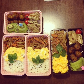 次女ミンミが彼氏とディズニーランドに行くのに作ったお弁当。ついでに?主人のお弁当も作ってもらってしまいました。ありがとう! 「根菜そぼろとカボチャのお月見だんごとレンコンの磯辺焼きだよ!( ´ ▽ ` )ノ」とのこと。美味しそうですよね。残りのレンコンやかぼちゃはいただきましたが、美味しかったですよ。