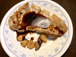 夕食は、トンテキ。揚げたガーリックも添えました。胡瓜の浅漬け。具だくさん味噌汁。南瓜で黄色くなってしまった・・・えのき、白菜、ネギも。千切りキャベツ。水にさらしてシャキシャキに。