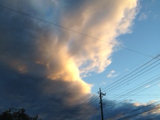 夕焼けが雲に映えて綺麗でした。仕事帰りにコンビニの駐車場で撮りました。 ついでに?おでんやパンなど買ってしまった。