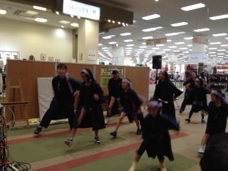 イオンのエレベーターホール前で、入間おやこ劇場が、ロックソーラン、布芝居、手遊びなどをやり、 私もパネルシアターの「ひよこさんのさんぽ」をやりました。ロックソーラン隊です。子どもから大人まで一緒にやります。 太鼓セッションにも参加しました。1時からと3時からの2回やりました。ロックソーランの後、手遊び。その後、パネルシアターをやりました。歌はアカペラ。ヘッド型のマイクを付けてやるのは初めて。子ども達が隠れたひよこを探すのを楽しんでくれました。写真は撮ってもらわなかったので、ありませんが・・・入間おやこ劇場のわいわいスタッフブログから借りました。その次は布芝居です。1時からの1回目が終わってから、腹ごしらえ。10時からブロック会でそのまま来てしまったから、お昼がまだだったのです。まあ、お菓子を食べてきたから、それほどお腹は空いてなかったけど、やまかけ卵うどんを食べてしまった。午前中のブロック会では役員選出と、ハロウィンの話をしました。私は入院中なので参加できず残念。毎年、お菓子の家をやってるのですが・・・