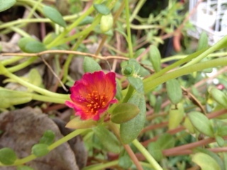 また・・・、うちの花。ポーチュラカ。バラ・ミミエデンの蕾がまた出てきました。南天の実。秋海棠の実。鉄砲百合の実。左の黄色はマーガレットコスモス。万両の実。ハーブゼラニウム・ナツメグゴールデンの蕾。シクラメンの蕾。