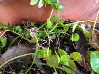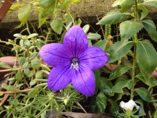 うちの花です。瞳草が一輪咲いてました。紫色の小さな花です。春に咲くのかと思ってたけど、秋にも咲くのかな?