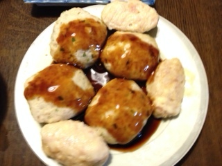 昨夜から具合悪かった息子カズ。今朝、熱を計ったら38度もあり、高校を休ませて 病院に行きました。でも、インフルエンザではなくて良かった。 薬を飲んだら、熱も下がり食欲も出てきました。 それでもよく寝てたから、治るかな。鼻が詰まって苦しそう。 夕食は、チーズ入りつくね甘辛だれかけ。 大根・人参・がんもどきの煮物。野沢菜の鰹節和え。塩辛いので、鰹節でマイルドにしたい。椎茸・ワカメの味噌汁。