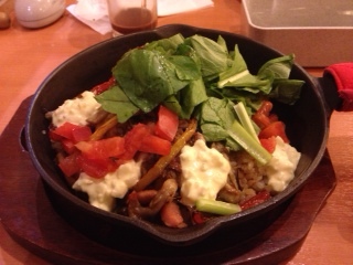 夕食は、ひれ肉のペッパーステーキ。玉ねぎとシメジの炒め物。小松菜のお浸し。ウィンナーと根菜のチャウダー。牛蒡、サツマイモなど。柿。