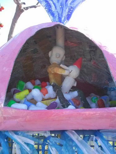 奥富のかかし祭りに、入間おやこ劇場の人が出したかかしです。うちのサークルのKさんやSさんがピノキオやクジラゼペットじいさんを作りました。メールで写真を送ってくれたので、載せさせてもらってます。 クジラに飲み込まれたピノキオとゼペットじいさん。左からピノキオ、ゼペットじいさん、くじらです。かかし祭りは、以前その近くの小学校に勤務していた時、子ども達が出品したり、金管バンドでマーチングしたり、ソーラン節を踊ったりと懐かしい思い出があります。初めて音楽専科をやった学校でもあるから、感慨深いです。