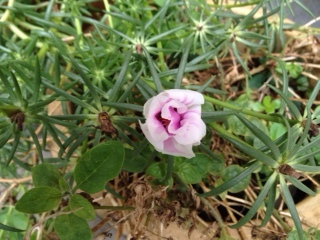 またまたまたまた、うちの花。ベランダから垂れ下げたアサリナ。ポーチュラカ。今日買ってきたガーデンシクラメンを鉢カバーに入れ、天使のガーデンピックを挿しました。アサリナ。ベランダから下を見たところ。ポーチュラカ。西洋朝顔。庭に置いた鉢から2階の屋根の上まで伸びてしまったけど、咲いたのはやっと一輪?気づかなかったのかな・・・西洋朝顔としかプレートには書いてなかったけど、ヘブンリーブルーかも。邪魔だからと主人に切られて枯れてしまったのに、なぜか一部は生きてます。ポーチュラカ。