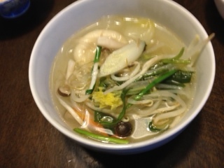 元勤務校の校長から電話があり、退職辞令を持って来てくれるとのこと。 パトロールのついでらしいですが、ありがたかったです。 健康保険を切り替えるのに退職辞令が必要なので。 実際に持って来てくれたのは教頭でしたが。 夕食は、ころころギョウザ鍋。みんなでつつくなら鍋もいいけど、 主人と義母と私の3人なので、 まとめて煮てしまいました。次女ミンミが強力粉で作った団子を入れたミネストローネ。意外な取り合わせだけど、美味しかったですよ。