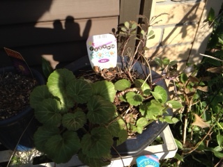 また、うちの花。万両の実。ガーデンシクラメン。アイビーゼラニウム・シュガーベビー。ブルーサルビア。ポーチュラカ。野紺菊。ランタナ。松葉ボタン。ハナミズキの実。後ろはウェルカムボード。