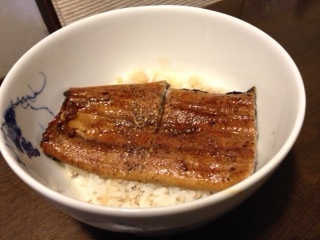 夕食は、鰻の蒲焼。義母が国産にこだわってるので、高いけど買ってもらいました。ほうれん草のお浸し。サラダ。エノキの味噌汁。梨。