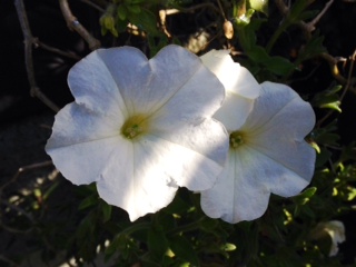 また、うちの花。ペチュニア・カーペット咲ホワイト。山茶花の蕾。メドーセージ。ポーチュラカ。菊。アサリナ。秋明菊。