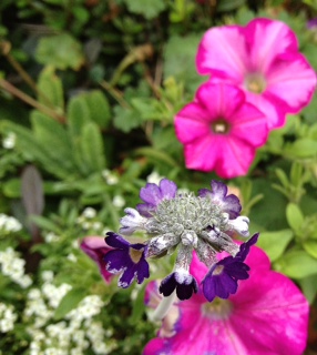 後ろのピンクは、ペチュニア・ほお紅。
