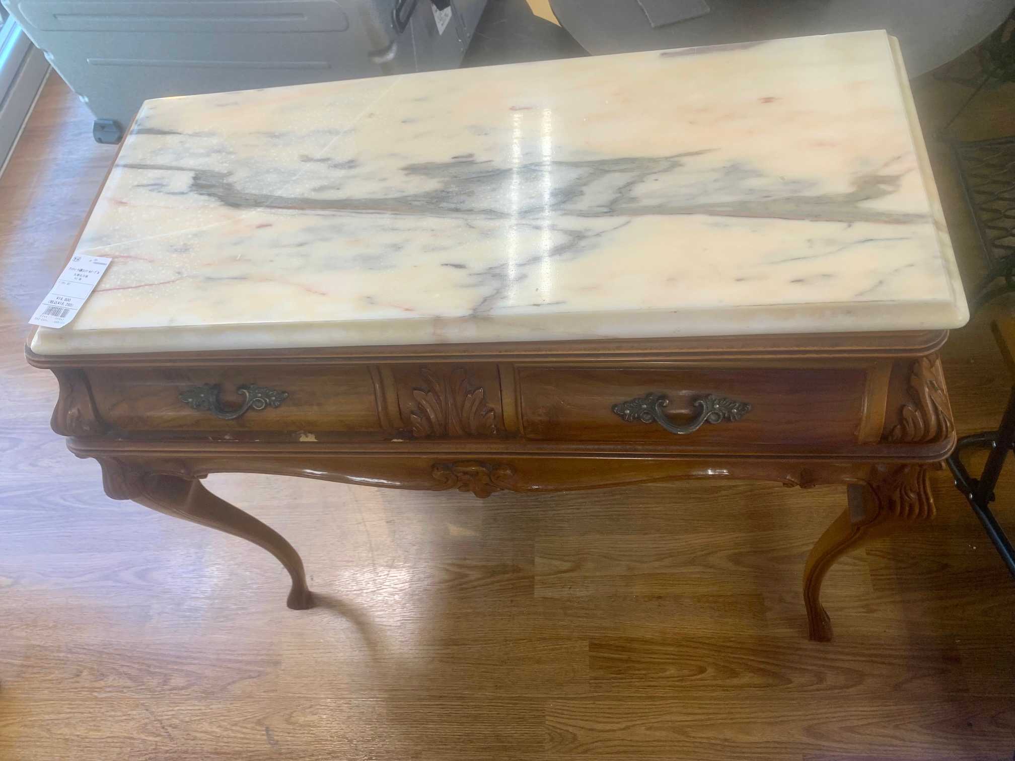 大理石の天板のレトロなデスク。大理石が割れてましたね。