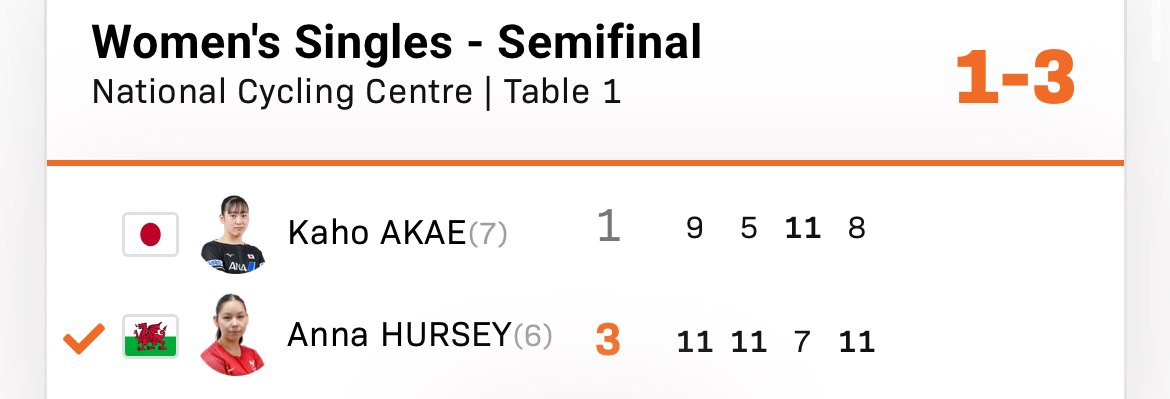 | 19:05 | T1 | 女子S-準決勝 | 赤江夏星WR123 1-3 アンナ・ハーシー(ウェールズ)WR101![]() |