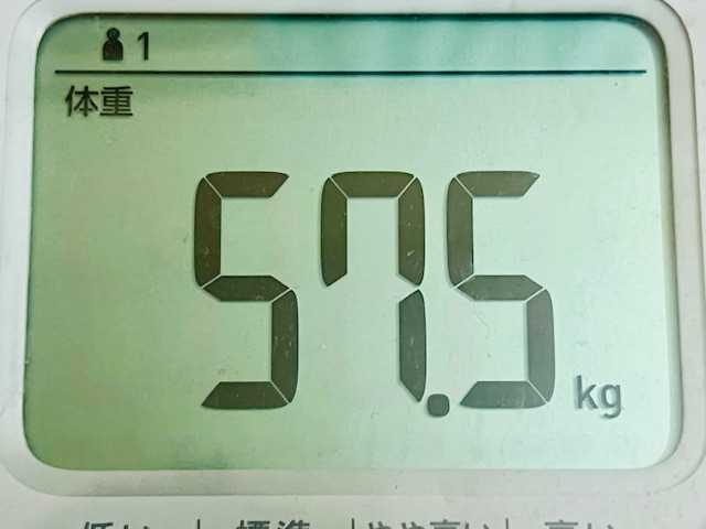 体重は、夕食後・入浴前57.5kg。2日前から1.5kg減った!