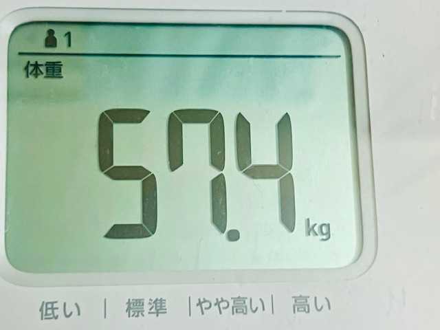 入浴後、57.4kg。入浴前から0.1kg減った。