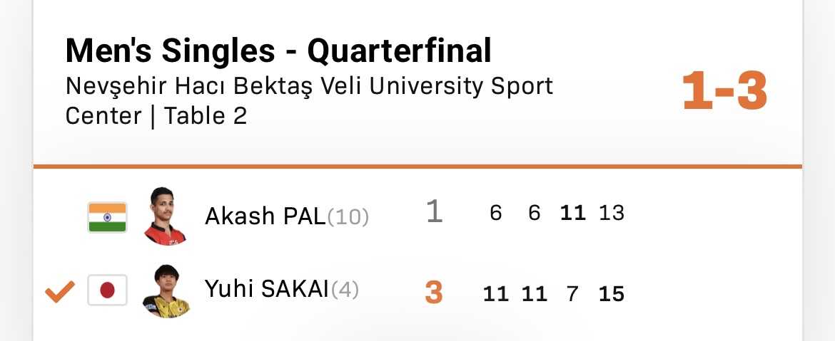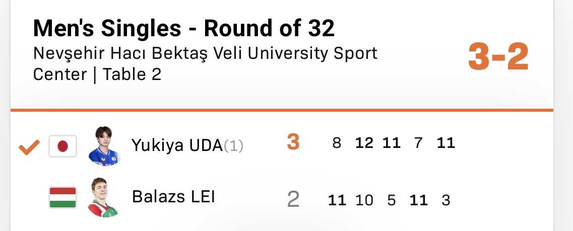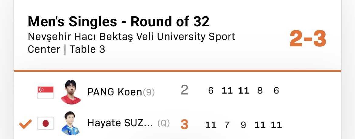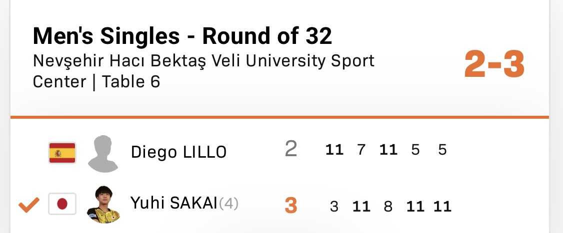 | 19:40 | T2 | 男子S-3回戦 | 宇田幸矢WR35 VS Anirban GHOSH(インド)WR219![]() |