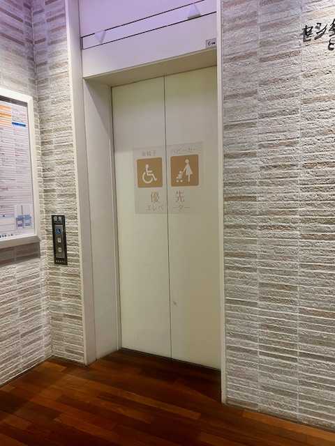 左の1機は車椅子・ベビーカー優先。専用じゃないけど、他の人が乗ったら乗れなくなってしまいますよね。