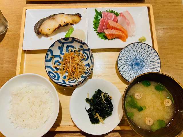 私は、銀だらの西京焼きとお刺身定食。1,990円。銀鮭と銀だらでは、270円も違う!